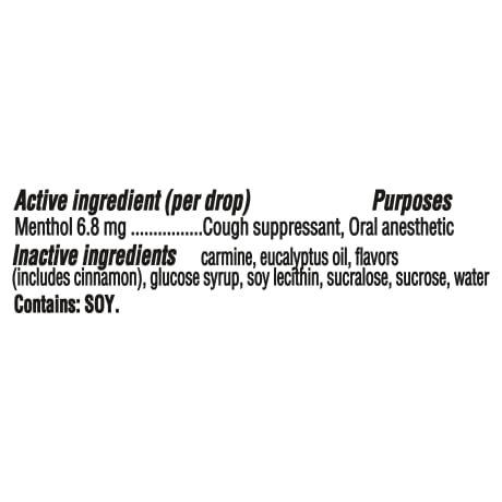 INACTIVE INGREDIENTS carmine, eucalyptus oil, flavors (includes cinnamon), glucose syrup, soy lecithin, sucralose, sucrose, water Contains: SOY.