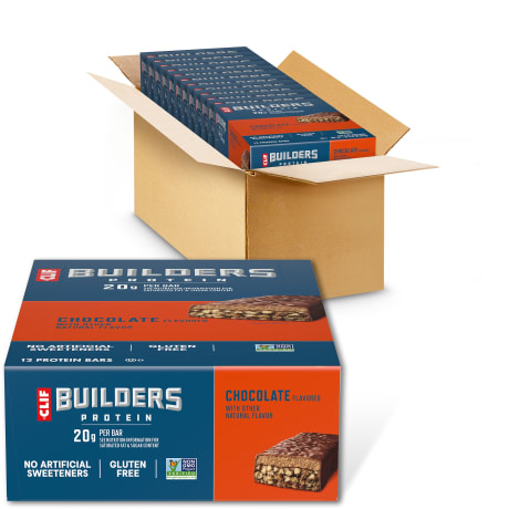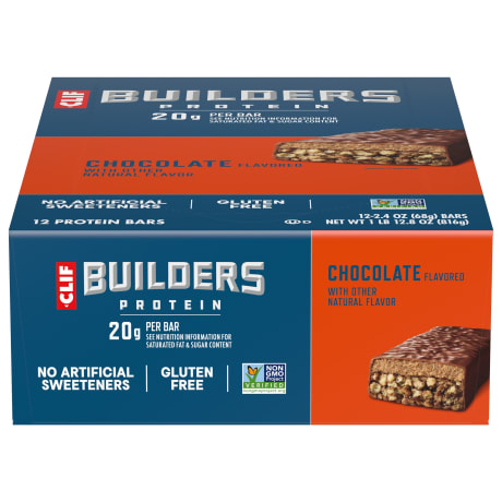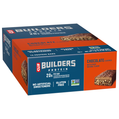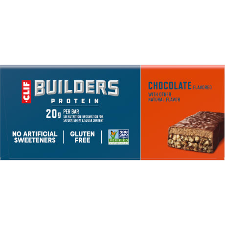 CLIF BUILDERS Chocolate plant based protein bars are packed with 20g of complete plant protein*, including essential amino acids to help support, rebuild, and repair muscles. Gluten free, non-GMO, and feature a low glycemic with no high-fructose corn syrup or artificial flavors. *See nutrition for saturated fat content.