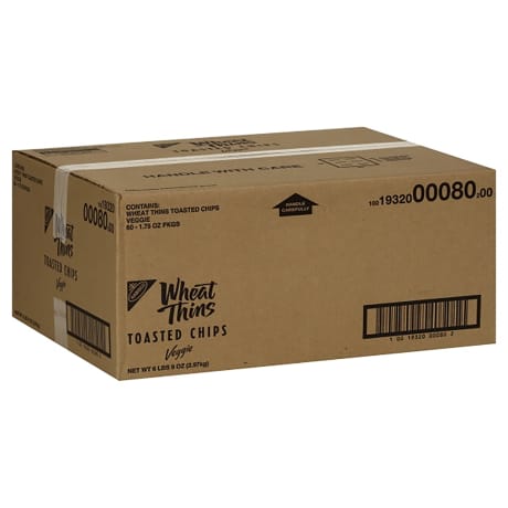 NABISCO Toasted Veggie Chips contain 100% whole grains and 50% less fat than leading regular potato chips. Case contains 60/1.75-oz. bags.