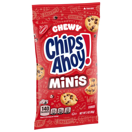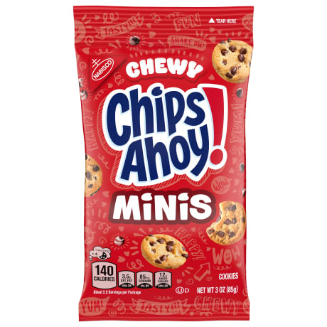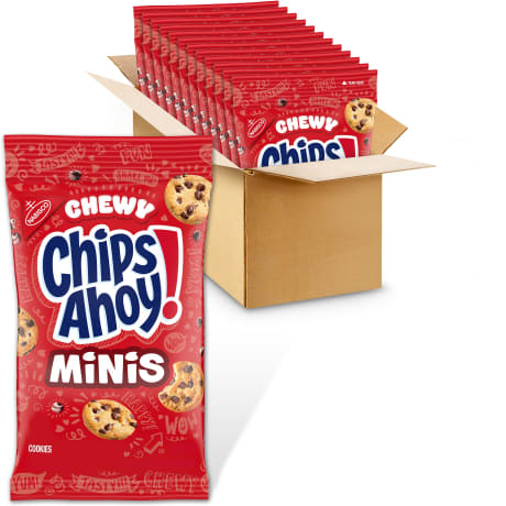CHIPS AHOY! Mini Chewy Big Bag delivers the sweet, delicious cookie taste that America has loved since 1963. These tiny, bite-size chewy cookies are made with real chocolate chips to satisfy any sweet tooth. Available in 12/3-oz. bags.