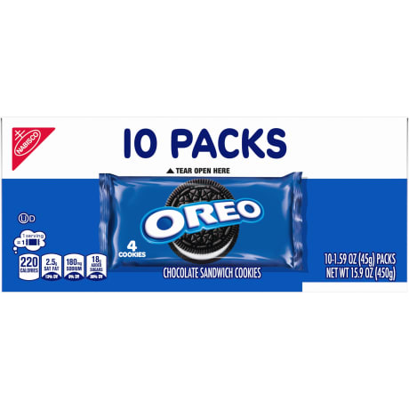 OREO is America's #1 Cookie, and it's easy to see why. Perfectly dunkable, classic cookie crunch delivers a taste of nostalgia to people of all ages! Case contains 40 individually wrapped 1.59-oz. packs with 4 cookies each, making them a great snack to help drive sales during afternoon and evening dayparts.