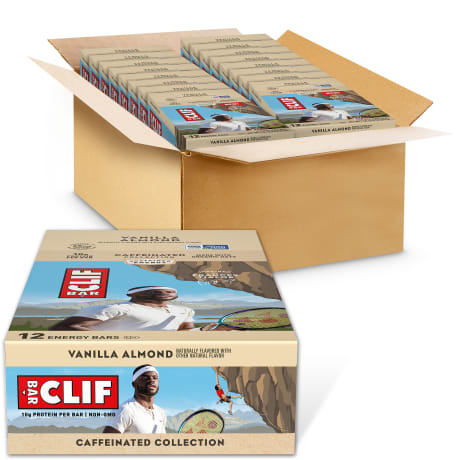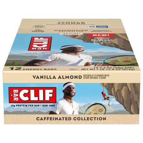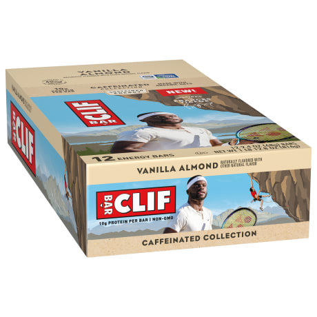 CLIF BAR Vanilla Almond Flavor caffeinated energy bars are purposefully crafted with a mix of protein, fat, and carbohydrates to help sustain active consumers before and during long-lasting activity. With 65 mg of caffeine per bar* (equivalent to the amount in one espresso shot) for an added boost, CLIF Caffeinated bars have caffeine that makes them perfect for an on-the-go morning offering or to help busy consumers sustain their energy through the afternoon. *Caffeine can range from 60-70 mg. Not recommended for pregnant or nursing women, children under 18 years old, or people sensitive to caffeine.